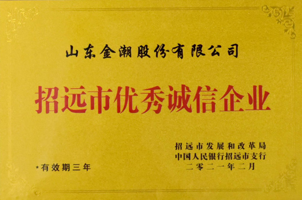 本報(bào)訊 為全面推進(jìn)招遠(yuǎn)市社會(huì)信用體系建設(shè),打造“信用招遠(yuǎn)”城市品牌,營造優(yōu)良營商環(huán)境, 近日,由招遠(yuǎn)市信用辦牽頭組織實(shí)施的首屆優(yōu)秀誠信企業(yè)活動(dòng)揭曉,全市共有76家企業(yè)榮膺2020年度“招遠(yuǎn)市首屆優(yōu)秀誠信企業(yè)”稱號(hào)。金潮公司榜上有名。(文/圖 王建洪 翟純明 )