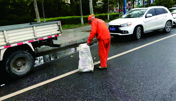 5月10日上午10點左右,一場突如其來的大雨徹底掃平了春日里的風和日麗。剎那間,溫度驟降,大雨滂沱,一會兒的工夫路邊已形成了積水。正在清潔路面的潤和物業(yè)保潔人員冒雨堅守崗位,用勤勞的雙手清掃著路面,為美化城市環(huán)境默默地奉獻。