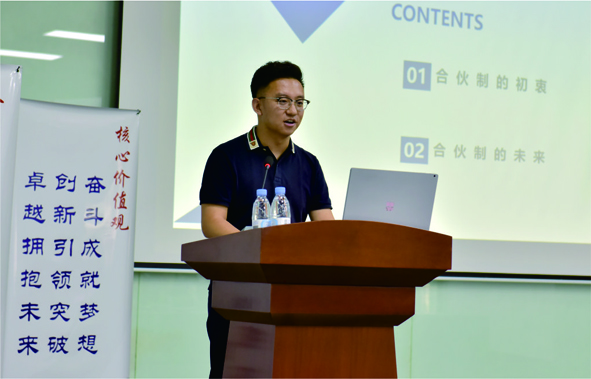 三位貴賓圍繞“合伙制”,依次進(jìn)行了精彩的主題宣講。同濟大學(xué)經(jīng)濟學(xué)學(xué)士,哲學(xué)碩士,管理學(xué)在讀博士程宇銳宣講的主題是《合伙制的初衷與未來》;金柚網(wǎng)人力資源外包濟青分公司總經(jīng)理李亞東講述了自己曾經(jīng)就職于海爾集團、阿里巴巴、韓國三星等國內(nèi)外著名 企業(yè)的職業(yè)歷程和職業(yè)規(guī)劃;北京德和衡律師事務(wù)所楊振偉律師為公司未來合伙制的落地實施,做了進(jìn)一步的遠(yuǎn)景鋪墊。宣講培訓(xùn)結(jié)束后,由行政人事總監(jiān)公布了合格合伙牽頭人候選人名單,以及后續(xù)合伙制方案公布的有關(guān)事宜。