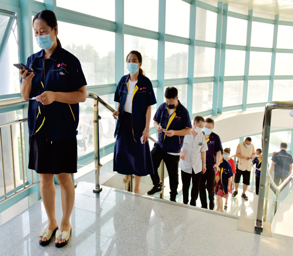 按照上級全員核酸檢測的總體部署和要求,金潮控股集團在做好“德爾塔”毒株疫情防控知識宣傳、嚴(yán)格人員進出登記信息、檢測體溫、重點區(qū)域環(huán)境消殺、落實全員新冠疫苗接種工作等常態(tài)化疫情防控的同時,行政人事中心積極與大秦家街道有關(guān)部門溝通協(xié)調(diào),將報告廳二樓會議室列為集中監(jiān)測點,要求各企業(yè)行政人事部對所有在冊員工的身份信息進行登記造冊,并指定專人全程跟蹤,積極組織、配合醫(yī)務(wù)人員的工作,有力有序地開展了全員核酸檢測,為有效阻斷“德爾塔”新冠變異病毒傳播,攜手筑牢群體抗疫屏障擔(dān)當(dāng)盡責(zé)。