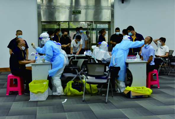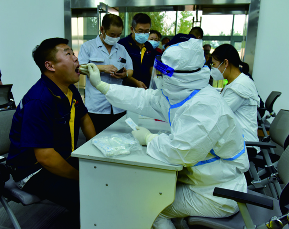 本報訊 (王 璐 閆藝丹 翟純明 攝影報道)面對來勢洶洶的“德爾塔”毒株,金潮控股集團響應(yīng)市政府號召,認(rèn)真貫徹全市疫情防控工作會議精神,廣泛動員、精心組織、明確分工、壓實責(zé)任,8月4日和6日,在大秦家街道有關(guān)部門的關(guān)心指導(dǎo)下,積極組織完成了兩輪全員核酸檢測,為全力阻斷“德爾塔”毒株疫情傳播貢獻“金潮人”的一份力量。