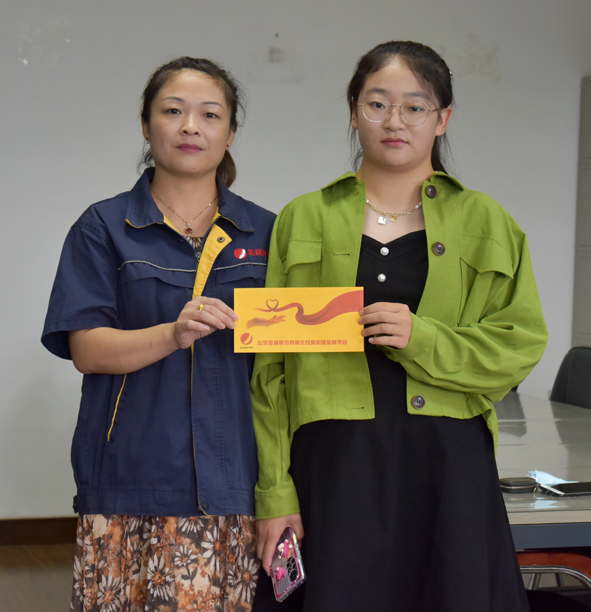 本報(bào)訊 “真沒想到,俺的孩子今年考上大學(xué)領(lǐng)到了公司頒發(fā)的3000元獎學(xué)金,成為山東金潮控股集團(tuán)公司愛心基金2021年度金秋助學(xué)的受益者!感謝公司領(lǐng)導(dǎo)的關(guān)愛,俺一定敬業(yè)愛崗、加倍努力工作,以實(shí)際行動回報(bào)企業(yè)。同時(shí),俺要教育自己的孩子懂得感恩,好好學(xué)習(xí),增長知識,將來學(xué)有所成回報(bào)社會,報(bào)效祖國!”一位考上大學(xué)的學(xué)生家長深有感觸地說。這是8月30日上午,山東金潮控股集團(tuán)有限公司行政人事中心向9名考上大學(xué)的職工子女頒發(fā)獎學(xué)金時(shí),前來領(lǐng)獎的職工發(fā)自肺腑的共同心聲。